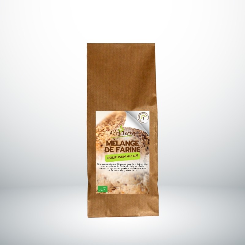 Une préparation préliminaire pour la création d'un pain exquis au lin. Cette alchimie se révèle comme un savoureux mariage de blés anciens, de farine et de graines de lin.