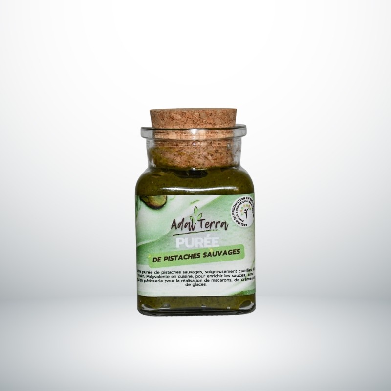 Notre purée de pistaches sauvages, soigneusement cueillies à la main. Polyvalente en cuisine, pour enrichir les sauces, ainsi qu’en pâtisserie pour la réalisation de macarons, de crèmes et de glaces.