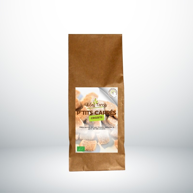 Pâtes carrées de type Crozets, élaborées à partir de blés anciens.